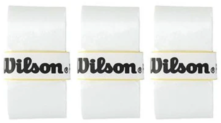 Three Wilson Pro White overgrips providing maximum feel and control.